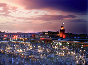 Κόκκινα τείχη περιβάλλουν την πόλη στην οποία εισέρχεσαι από τις Ιαπανομαυριτανικής τεχνοτροπίας πύλες. Υπέροχα σουκ, Τζαμιά, παλάτια, πολυσύχναστες πλατείες και αγορές αποτελούν την Μεντίνα, την παλιά πόλη. Η καρδιά της βέβαια κτυπά στην πλατεία Djemaa el-Fna που κάθε βράδυ μεταμορφώνεται σε ένα μαγικό θέατρο που όμοιο του δεν υπάρχει. Μουσικοί, χορευτές, γόητες φιδιών ακροβάτες σαλτινπάγκοι παραμυθάδες μαιμούδες και ότι άλλο βάλει ο νους σας σε ένα μοναδικό πανηγύρι σε μια ατέλειωτη γιορτή.